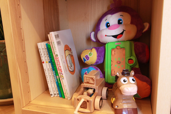 小さいお子様用のおもちゃや絵本をいくつか用意しています。子供連れの方も遠慮なくお越しください。