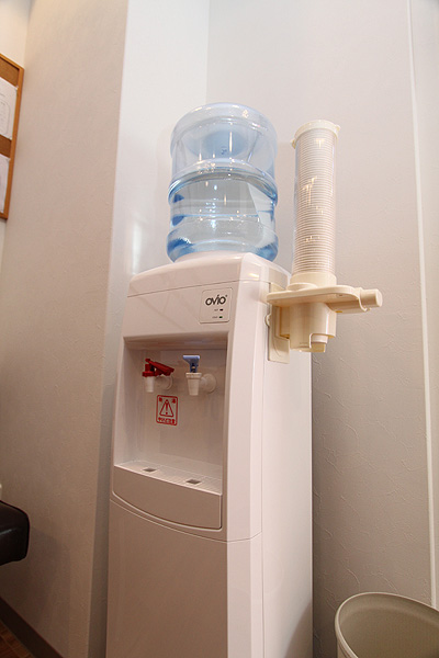 待合室にはウォーターサーバーが置いてあります。水分は体にとってとても大事ですのでこまめに補給しましょう。